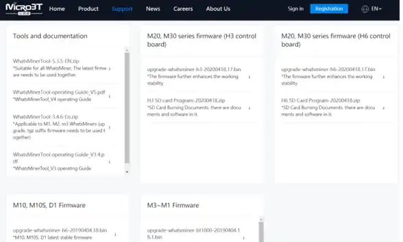 دانلود بستهی مناسب برای کنترل برد از وبسایت رسمی WhatsMiner: