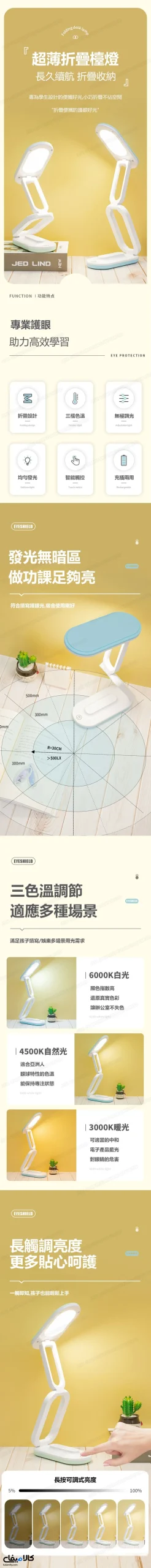 چراغ مطالعه و خواب تاشو قابلیت تنظیم ارتفاع در چند ارتفاع مختلف برای راحتی بیشتر در مطالعه قابلیت جمع شوندگی کامل و دیمر دار برای تنظیم شدت نور دارای ۳ حالت نور مختلف زرد و سفید و خورشیدی